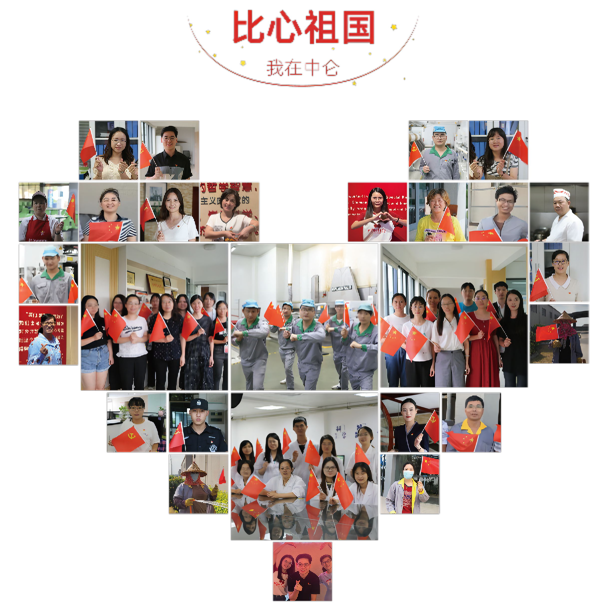 中侖塑業檢測課的伙伴們,負責過程及成品檢測、原輔料檢測、污水和公用介質水質的檢測工作,他們用最質樸的方式向祖國致以節日的問候。