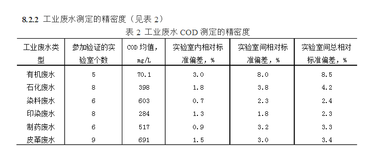 本標準適用于各種類型的含COD值大于30mg/L的水樣,對未經稀釋的水樣的測定上限為700 mg/L。超過水樣稀釋測定。