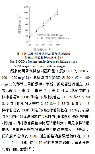 (2)使用 HACH 數(shù)字消解器、普通分光光度計(jì)和自配替代試劑進(jìn)行 COD 的測定,將消解時(shí)間由 2 h 減少** 15 min ,縮短了分析時(shí)間,降低了費(fèi)用。