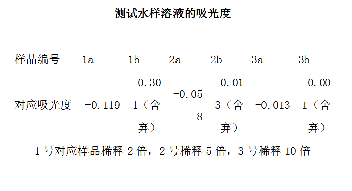 As——水樣的吸光度; Ab——空白試驗的吸光度; a——校準曲線的截距; b——校準曲線的斜率; V——試料體積,ml。結果:水樣氨氮的質量濃度:ρN1=7.4216mg/L、ρN2=7.962mg/L 平均的質量濃度:ρN=7.6918mg/L